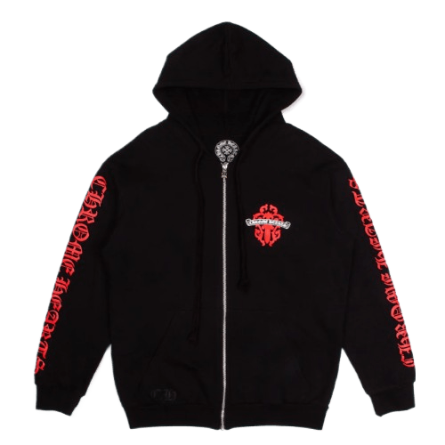 Chrome Heart Red Dagger Logo Zip Up Hoodie