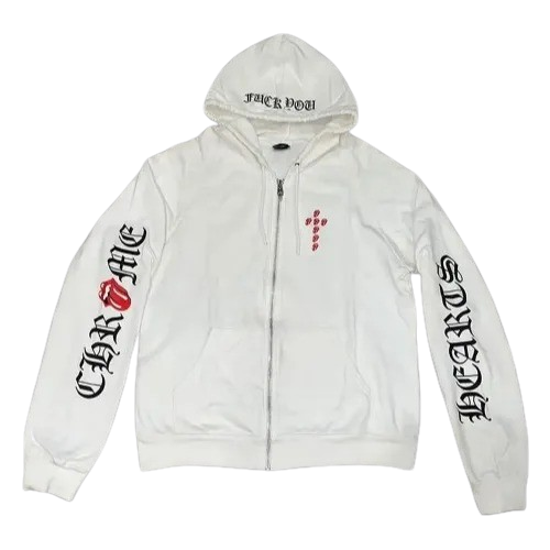 Be the first to review “Chrome Heart Rolling Stone Zip-Up White Hoodie” Cancel reply